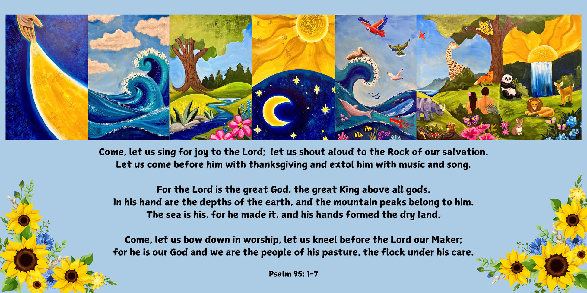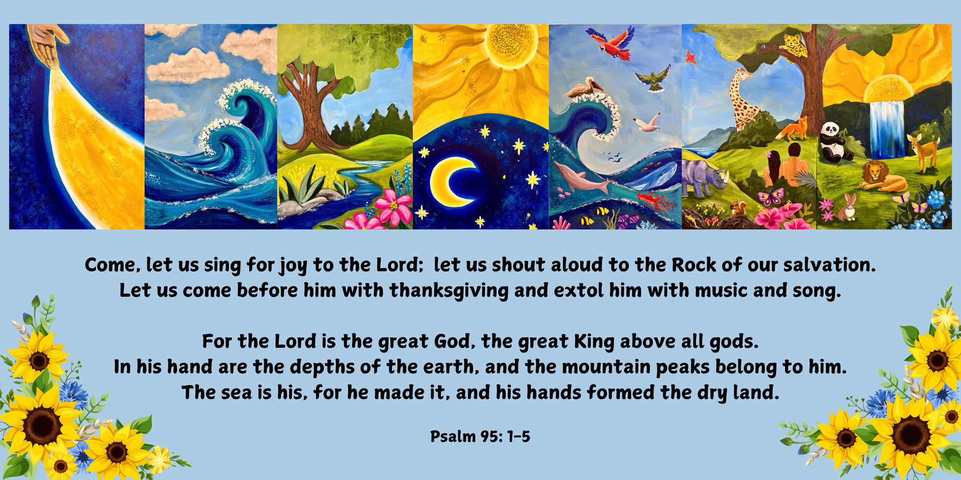 Print of the original Creation paintings on one 12x24 inch paper. If there is a verse or passage that you would like instead of the ones here, other words are available.
