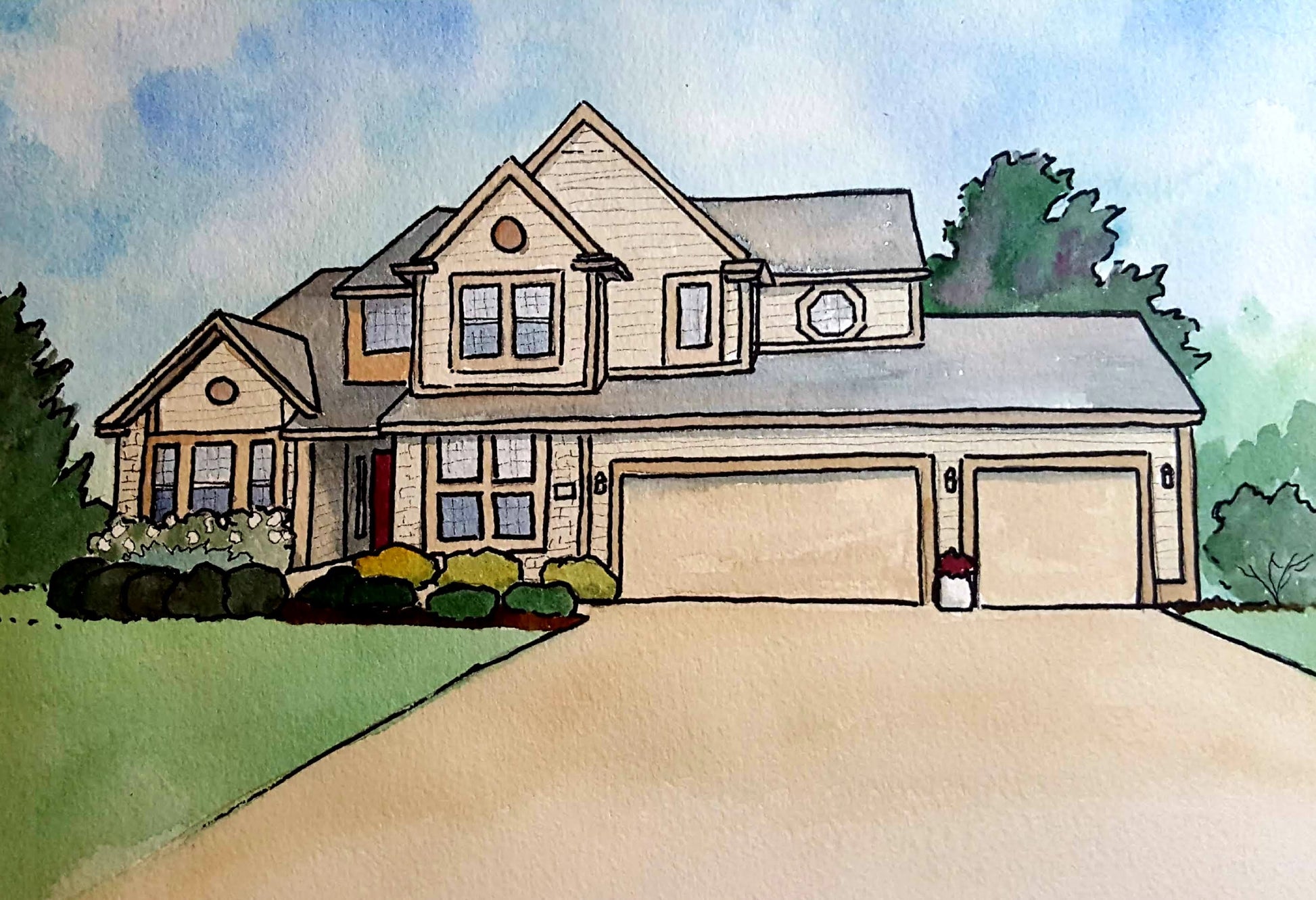 I can create a custom watercolor and ink portrait of your home.  Just send me photos and an address.  I can include lettering like the address or "Home Sweet Home" as well.